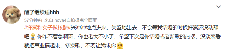 更令网友惊讶的时,两个人不仅一共开车去测核酸,随后又一同回到许嵩所住小区。