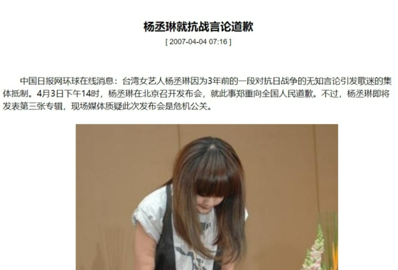 那之后,杨丞琳直接被大陆网友抵制,甚至有心人,还扒出了她在综艺中关于抗战的轻率言论。