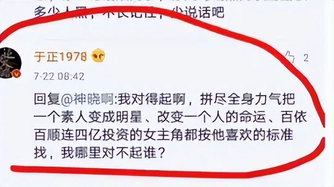 于是不顾其他人的意见,一部投资几亿的大制作就这样轻易确定了女主演,也难怪于正后来一直耿耿于怀。