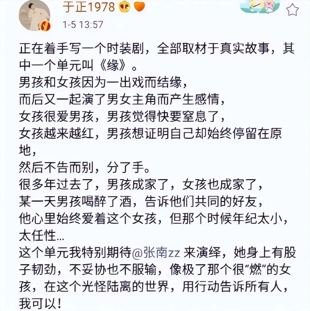 因为陈晓和于正的分道扬镳,从来不嫌事大的“于妈”在社交平台分享了一篇感人的小作文,关于男孩和女孩的青涩爱情故事。