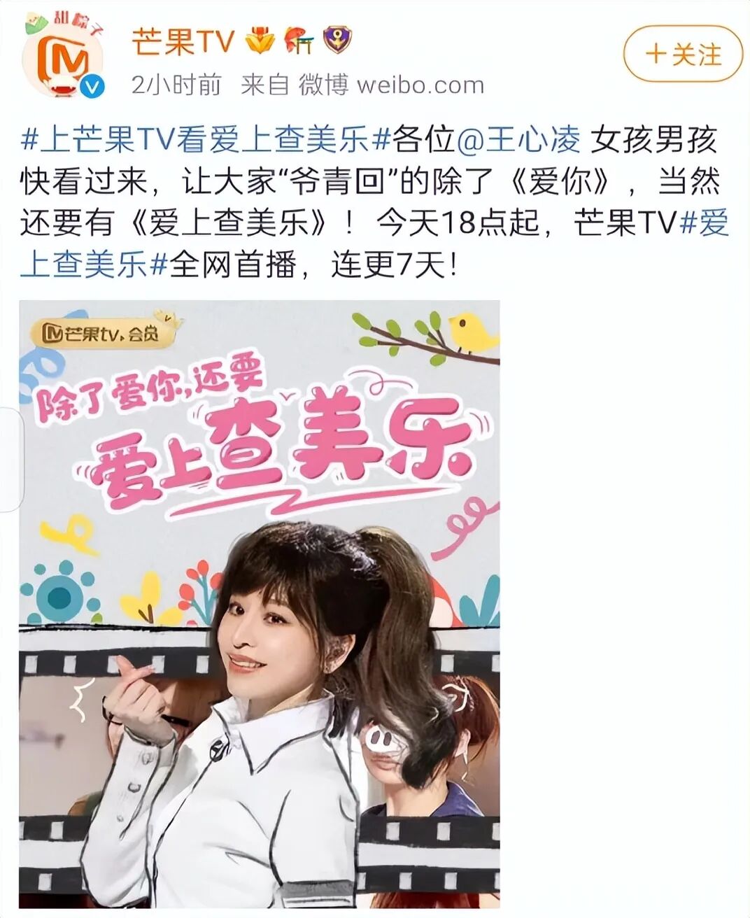 芒果TV也意识到各位粉丝都是急性子,为了安抚“王心凌男孩”,芒果TV马上安排播出王心凌主演的偶像剧《爱上查美乐》。就是不知道这波紧急公关,“王心凌男孩”是否买账了。