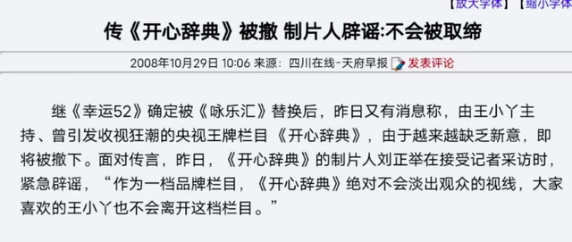 最终,《开心辞典》华丽谢幕,王小丫收心休整,“恭喜你,答对了”成了一代人的回忆。