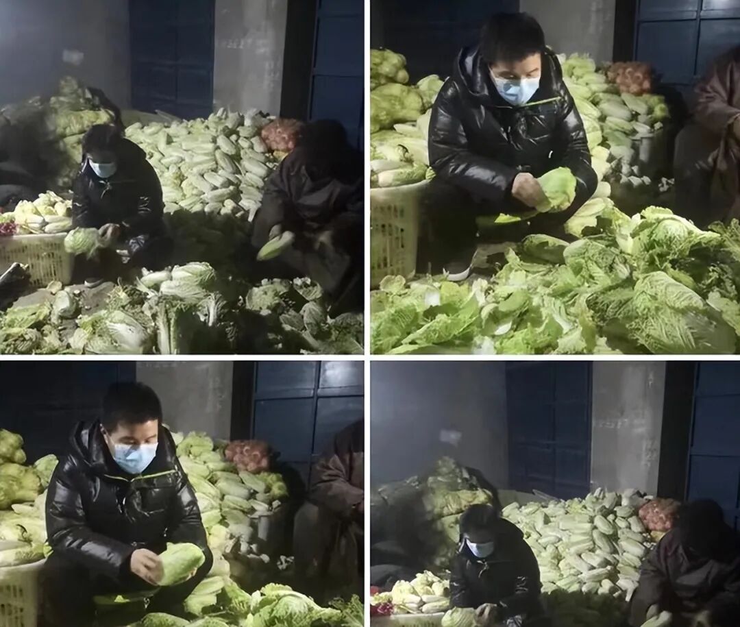 从下面的照片中,我们可以看到缪杰穿着厚重的羽绒服,戴着口罩逐一清点着大白菜,这画面的确很难让人将他和知名歌手联系在一起......