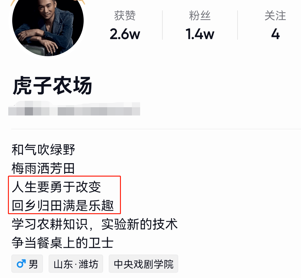 如今的高虎已经成为一个地地道道的“农民”,经营着自己的农场,此外他经常在网上发布自己的田园日记,账号名为“虎子农场”,他在简介中写道“人生要勇于改变,回乡归田满是乐趣”。