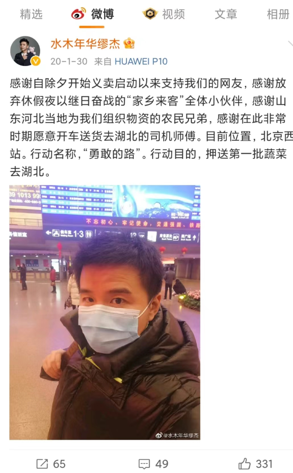 当初武汉疫情爆发,国内大大小小的明星们都捐款抗灾,然而还有一位特殊的明星,他亲身奔赴湖北疫区,为居民送去新鲜的蔬菜!他就是曾经学霸组合“水木年华”的一员——缪杰。