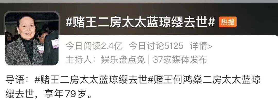 6月过半,一则消息突然上了热搜,赌王二太蓝琼缨女士因患癌,已于11日在养和医院病逝,享年79岁。