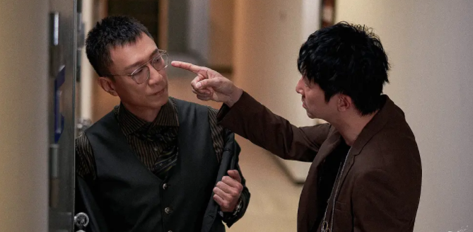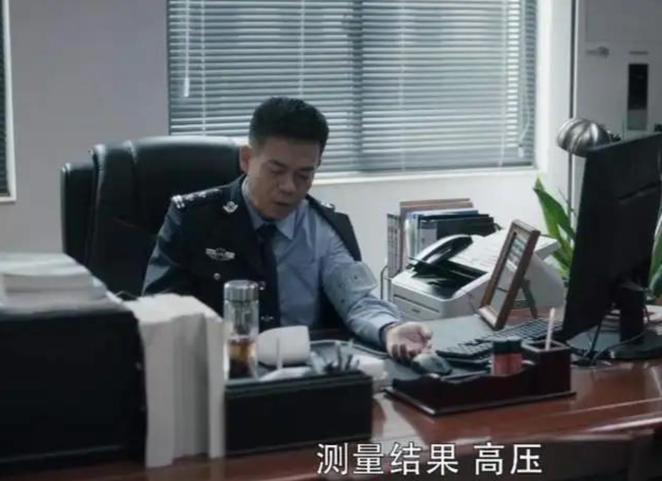 也正因为这个特殊情况,拍摄现场出现了很多灵感碰撞、临时起意的巧妙设计。比如为了凸显大江的人物性格,特意给他加了个粉色保温杯;暗示高明远的老奸巨猾,大家突发奇想给他车上安装了一套假山茶具,戏剧感拉满。再比如为了让胡所长这个角色更有层次,王斯阳把自己的血压计贡献出来,才有了剧中胡所长频繁测量血压,暗示内心焦虑的精巧场景。