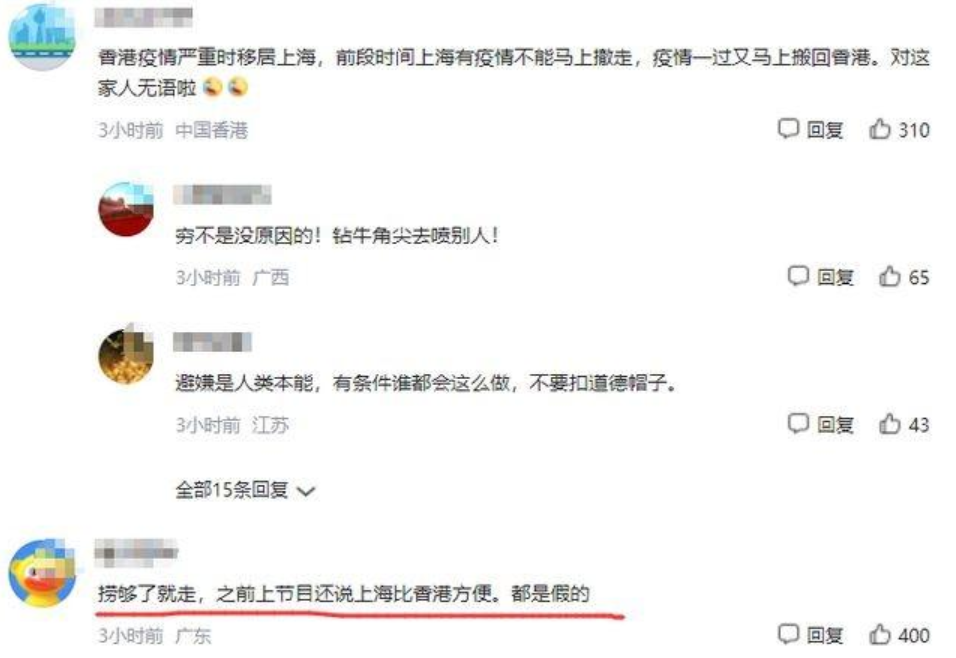 她的话说出了现实,演员这个行业,一旦过气,就失去了价值,资源也会变差。但他们拿着高片酬,即使资源变差了,赚的钱也够他们生活一辈子。其实,像蔡少芬这样想往内陆发展的香港艺人不在少数。对蔡少芬为何这么迅速回到香港,网上众说纷纭。有说是蔡少芬早就想回香港,但是因为上海的疫情原因没成行,所以这次一解封就去香港;还有人说是为了孩子的教育,因为香港的教育资源要好。