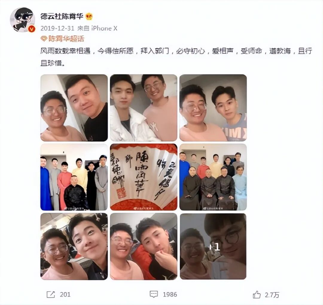 当初此人在拜师之后曾在微博上信誓旦旦地表示:“风雨数载幸相遇,今得偿所愿,拜入郭门,必守初心,爱相声,受师命,遵教诲,且行且珍惜。”