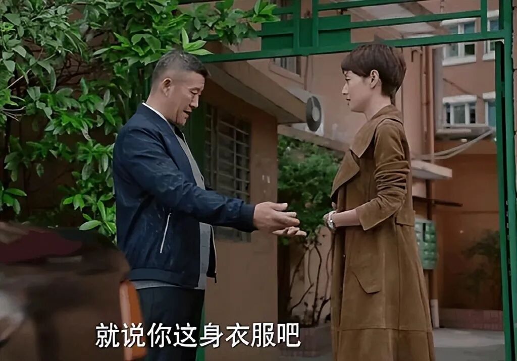 老金约罗子君去和朋友聚会,当看到罗子君穿了一件贵重的衣服时,老金打量了一秒,立马就让罗子君去换普通的衣服。