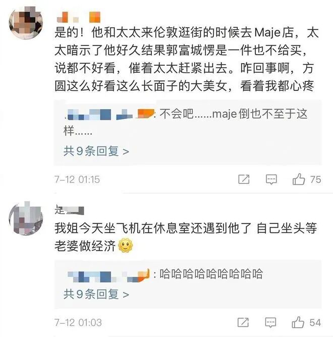 网友爆料称看到两人一起逛均价1000出头的服装店,郭富城老婆方媛各种暗示,他愣是一件也不买,还催着方媛赶紧出去。