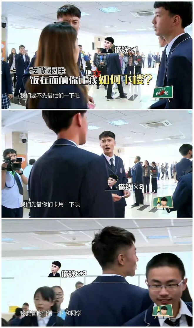 借到钱之后,张丹峰又发现充饭卡要下楼,他懒得下去,于是又开口跟其他同学借饭卡。