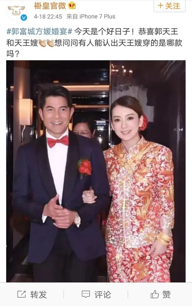 网友眼尖的扒出来了:郭富城自己的定制西装是花4万块买的,老婆方媛的龙凤褂是花4千租赁的。