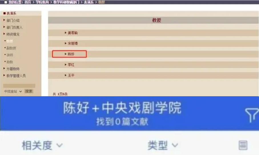 但让人意外的是,2021年就有网友发现,陈好在中戏任教八年,没有发布一篇论文,却被评了教授职称。