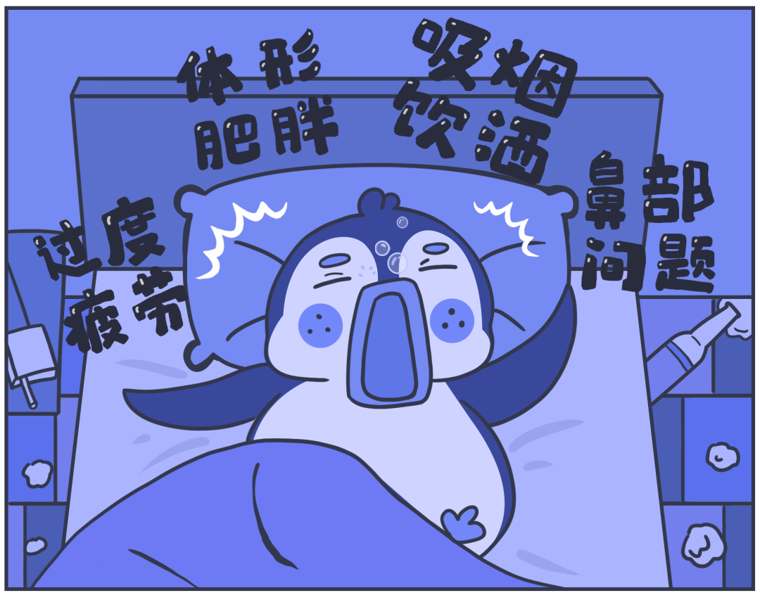 吸烟饮酒:烟和酒精会麻痹呼吸道神经,导致咽喉部的肌肉松弛塌陷。