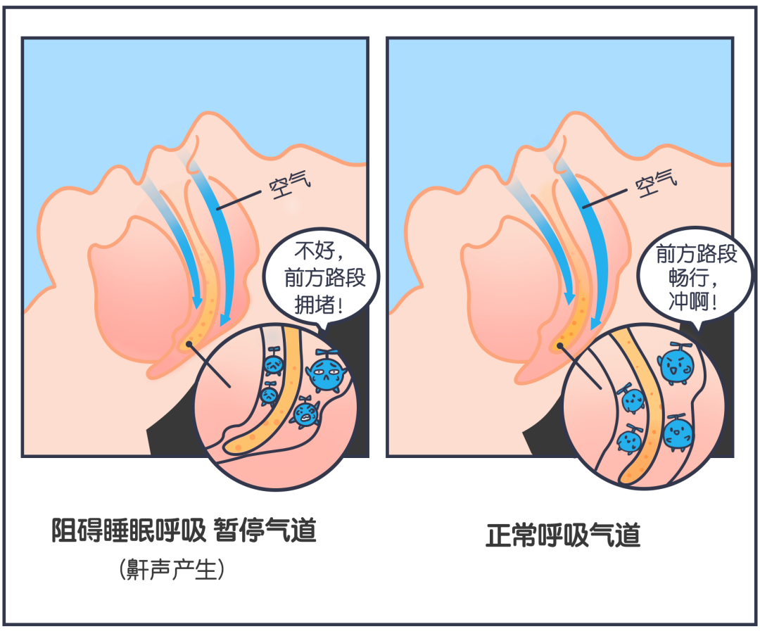 和清醒的时候相比,我们进入睡眠状态后,咽喉部的肌肉会变得松弛,从而会部分阻塞气道。