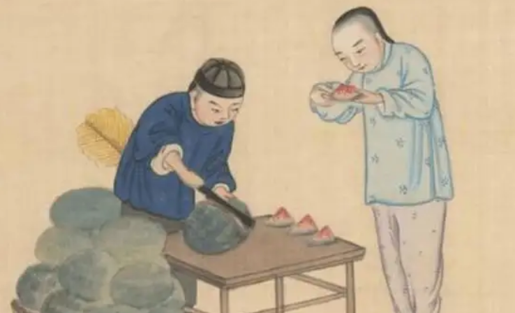 虽然已经大汗淋漓,但是乾隆皇帝还没有忘记保持自己天子的风度,笑了两声,说:“老人家你不要害怕,我们没有恶意,只是想买你几个西瓜。”老农见说话的人衣着华贵,一看就不像一般人,心中虽然忐忑,但也觉得他们没什么恶意,于是便从瓜田里挑了几个硕大的西瓜,并帮他们切了开。