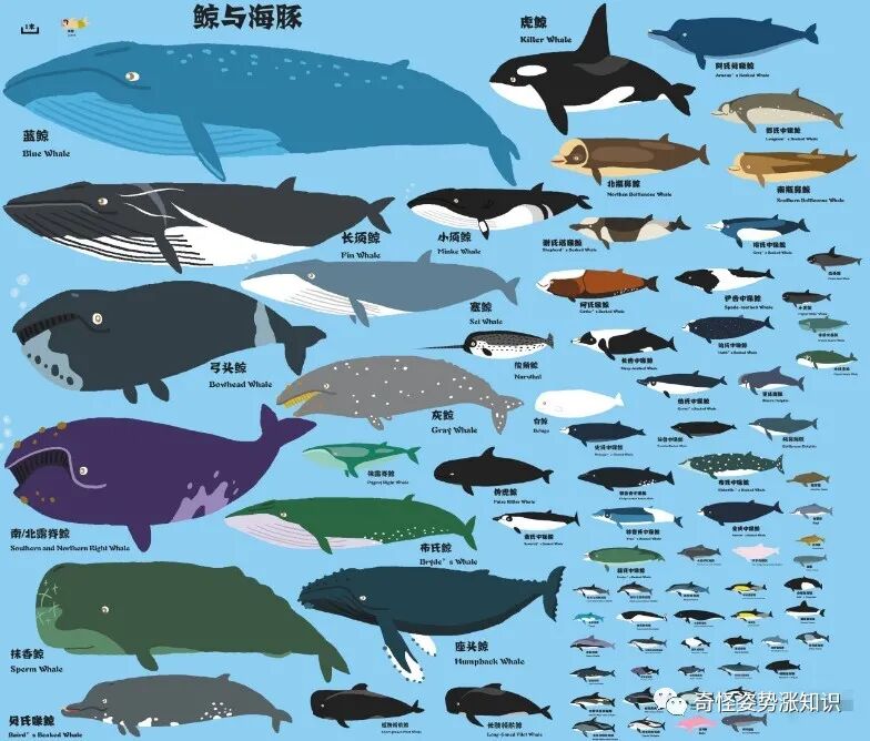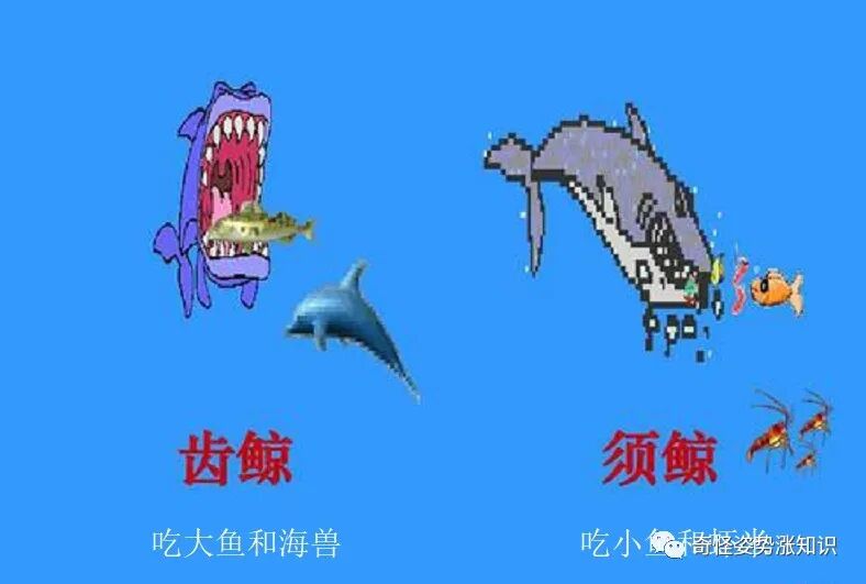 鲸鱼的两大分支,“须鲸”和“齿鲸”,前者体型比较大,一般以海洋中的虾和小鱼为食,因为它们的口中没有牙齿,所以只能采用滤食的方法;后者体型较小,而且种类也要多得多,这部分鲸鱼有一种特别的技能,就是可以依靠自带的声纳系统来进行定位,在智商方面表现出色。