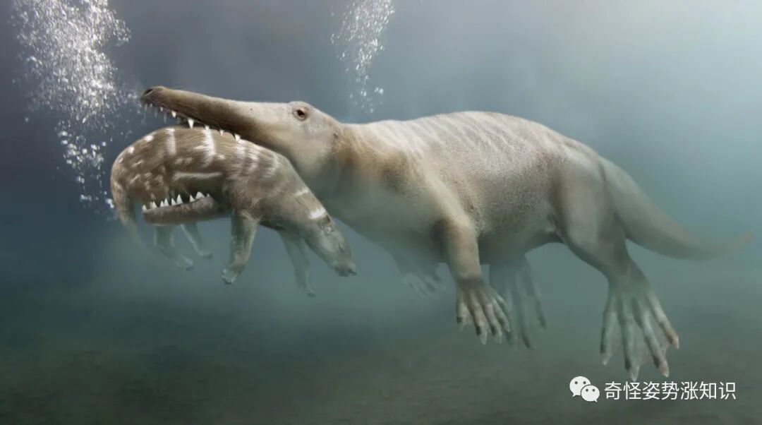 在距今5400万年千左右,其中的一支开始完全进入水中生活,为了更好地适应海洋,它们的前肢发生了进化,演变为鳍,后肢则退化成为了尾鳍,慢慢有了鱼类的特征。