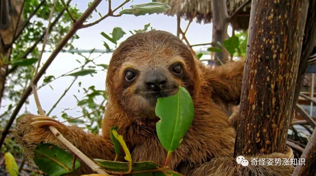 曾有科学家为获得树懒消化系统的数据将一片树叶放进了它嘴里,半个月过去了,等科学家将树懒的嘴打开,发现那树叶竟然还在这里。它们真的是嚼一下都不愿意,全靠口水中的消化酶腐烂树叶。