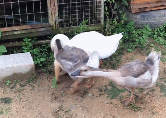所以蛇在进入大鹅的领地时,一定会被群起而攻之。大鹅遇到陌生的动物,除了会主动攻击,将它驱赶出领地以外,还有一个动作,那就是大叫。