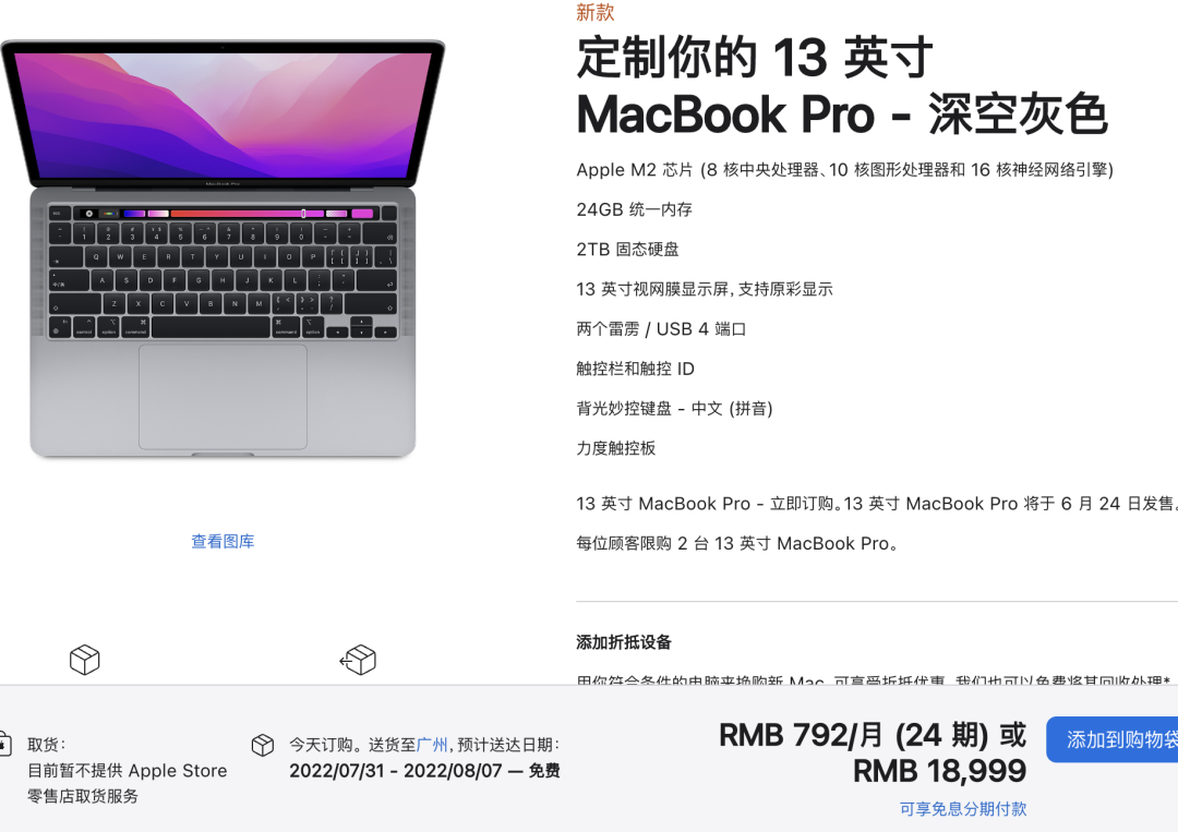 苹果昨日晚间开始接受带有 M2 芯片的 13 英寸 MacBook Pro 的订单,与许多其他 Mac 一样,这款新机也面临着发货延迟情况。
