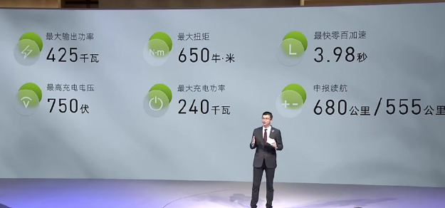 据发布会介绍,阿维塔 11 基于全新一代智能电动汽车技术平台 CHN,申报续航为 680/555 公里,最大输出功率 425 千瓦,最快零百加速 3.98 秒。