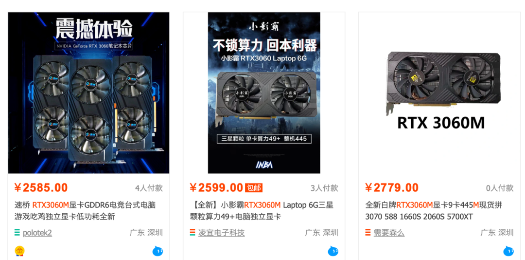 如上图所示,淘宝平台上出现在了大量的 RTX 3060M 和 RTX 3070M 桌面显卡,其主要卖点都是不锁算力,但在 LHR 被破解的今天,这已经谈不上卖点了。(新闻来源:IT之家)