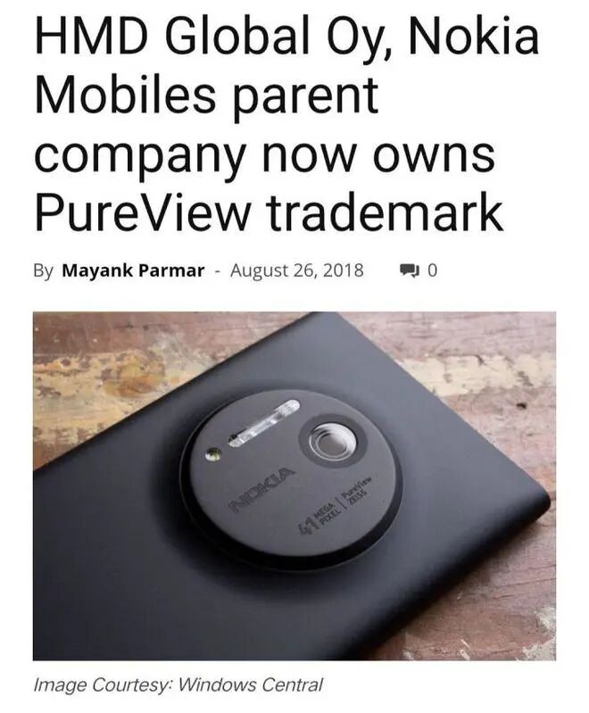 当然,后面诺基亚归来,又把PureView的商标买回来了!
