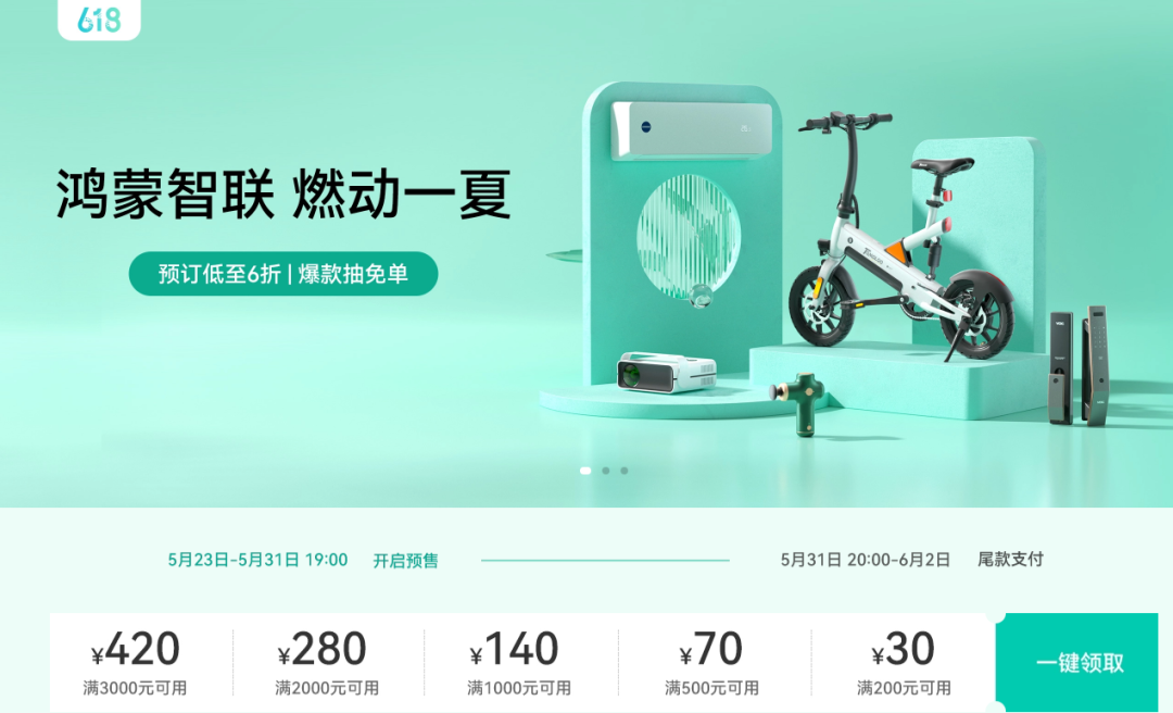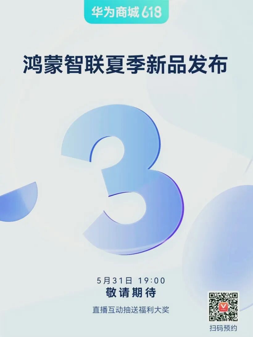 华为商城显示,鸿蒙智联夏季新品发布会将于 5 月 31 日 19:00 举行。