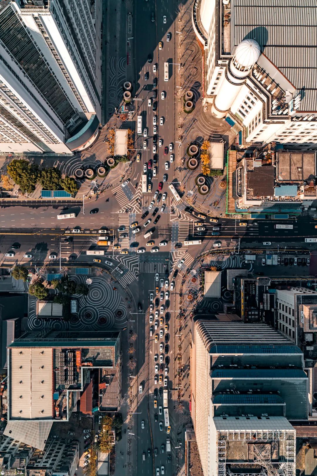 从空中俯瞰钟家村古城商贸区鹦鹉大道以西,一个17万平方米的低密度大型商业街区已基本成型,荆楚风格的深色梯形屋顶以连廊成片。