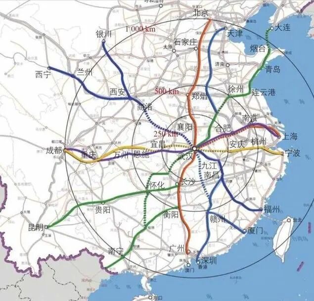 目前,武汉到上海走的是沪汉蓉铁路,部分路段运行时速仅200公里。沿江高铁开通后,武汉3小时内可达上海和重庆,到成都也可以控制在4小时以内。如此,武汉到四大城市群的标杆速度都压缩到了4小时之内。