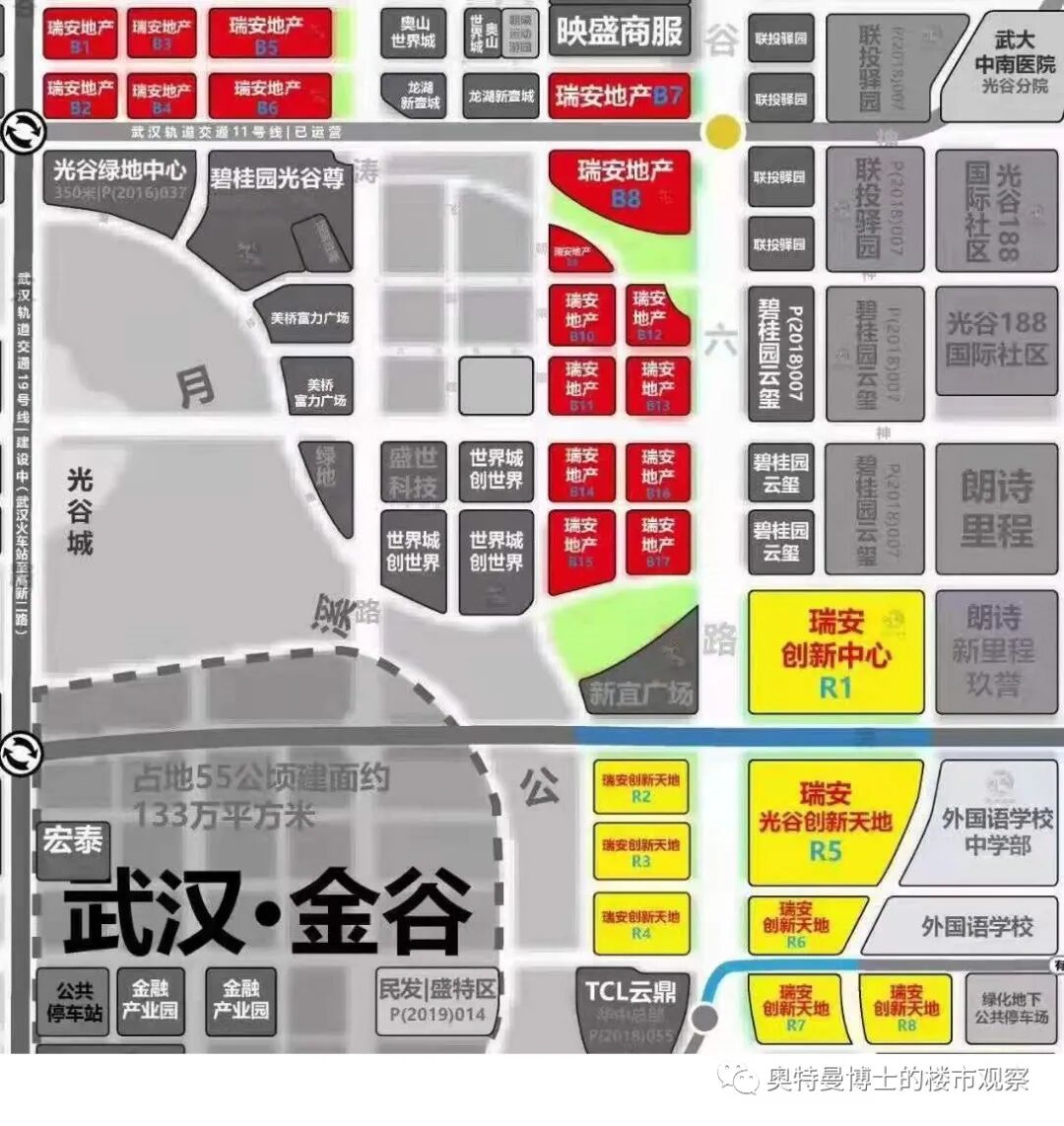 光谷瑞安创新天地住宅部分一共R1-R8八个地块,此次公示的为R7及R8地块。