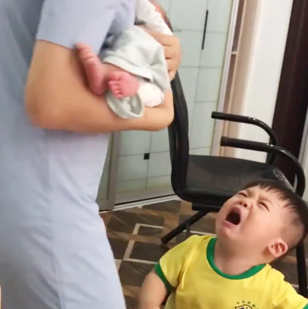 妈妈心疼二宝,不停安抚娃,大宝在一边呜呜哭泣不止。安抚完弟弟后,妈妈跟大宝讲道理:“妈妈说你,你委屈了是吗?但妈妈说得不对吗?你是哥哥,你是不是做错事了?”