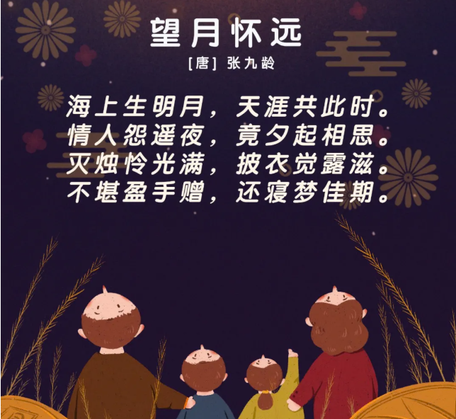 人不见古时月,今月曾经照古人。古人在中秋喜欢吟诗作对,您不妨也带孩子感受一番——读读诗,玩玩飞花令,聊聊您喜欢的文人墨客,也不失为一种雅趣。