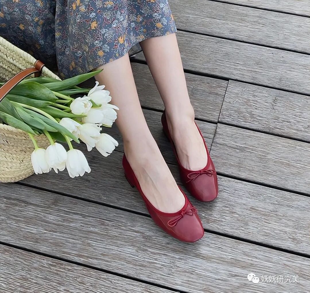 芭蕾鞋是近期新进的时尚王者,版型源于芭蕾舞鞋,自带高级优雅的气质,而大面积露出脚背的设计使得它在夏天穿起来也非常透气、舒适,百搭的同时也不会像运动鞋那样捂脚,闷脚,所以成了很多时尚女人的夏日首选。