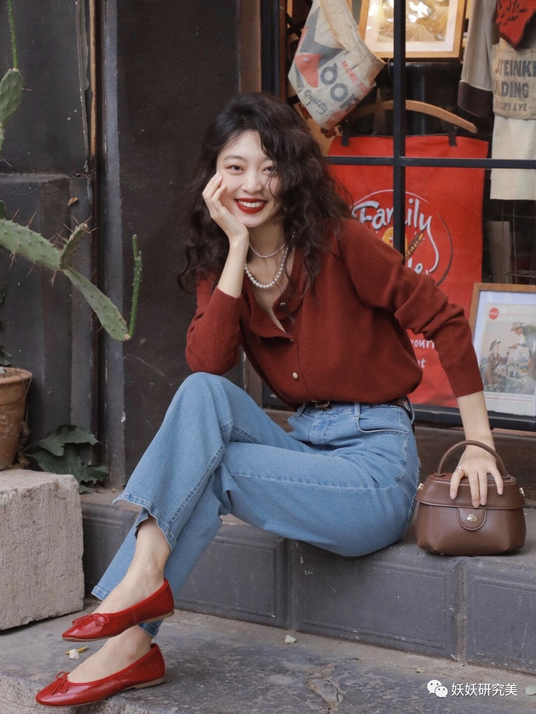 芭蕾鞋的气质比较综合,即有古典的美丽,又有现代的个性,在搭配时可以根据自己的偏好随心组合,用平时常穿的日常单品来搭配也能很别致。