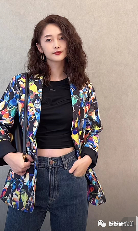 而当她穿上短款上衣高腰裤,好身材立刻就凸显出来了,依旧是配的常人hold不住的花衣服,然而这样的搭配却不会显土,宛如化身女明星。从这张照片我们也可以看出来,她不仅没有假胯宽,甚至身材一级棒。