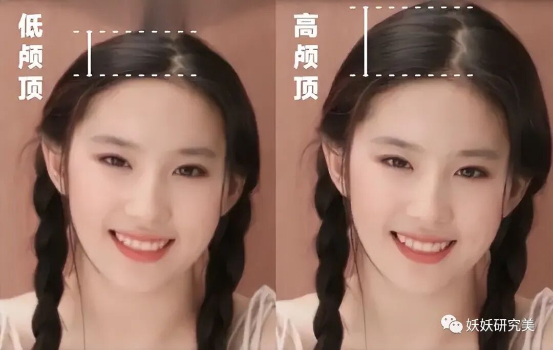 用修图技术做个对比,大家就能看出高颅顶和低颅顶之间有多大的差距了。