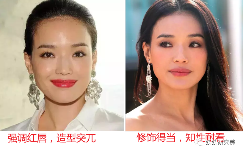 舒淇的大红唇造型就没那么成功了,因为强调唇部会放大五官比例失调的问题,而换一个比较淡雅的唇色就能凸显出她在底子上的优势,让自己既有辨识度又多了一份韵味儿。