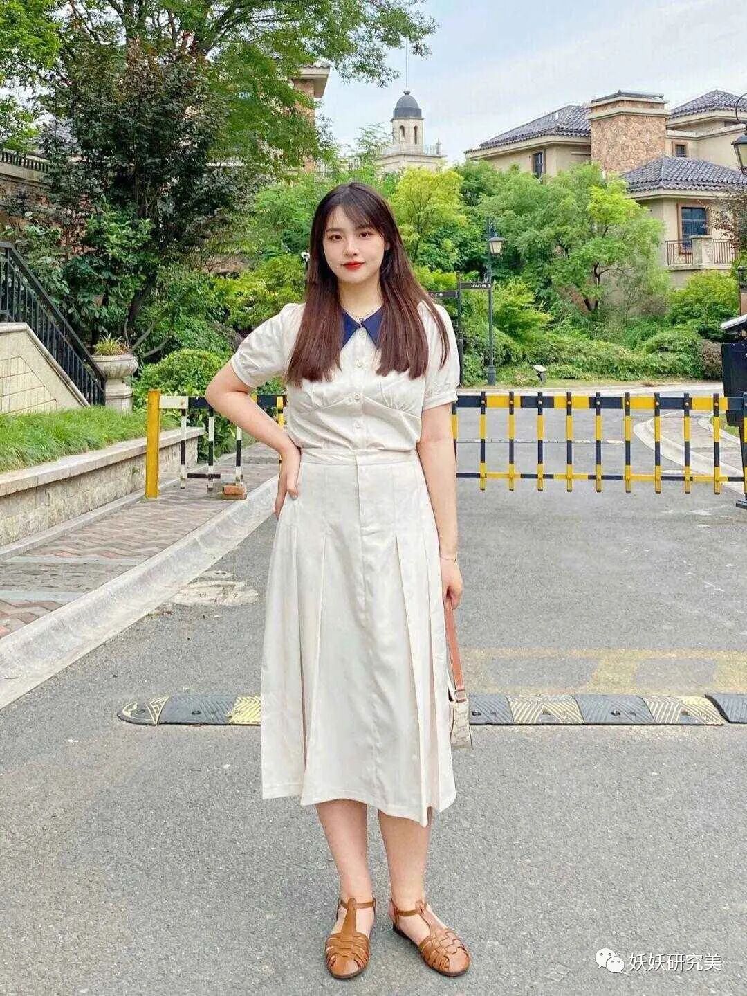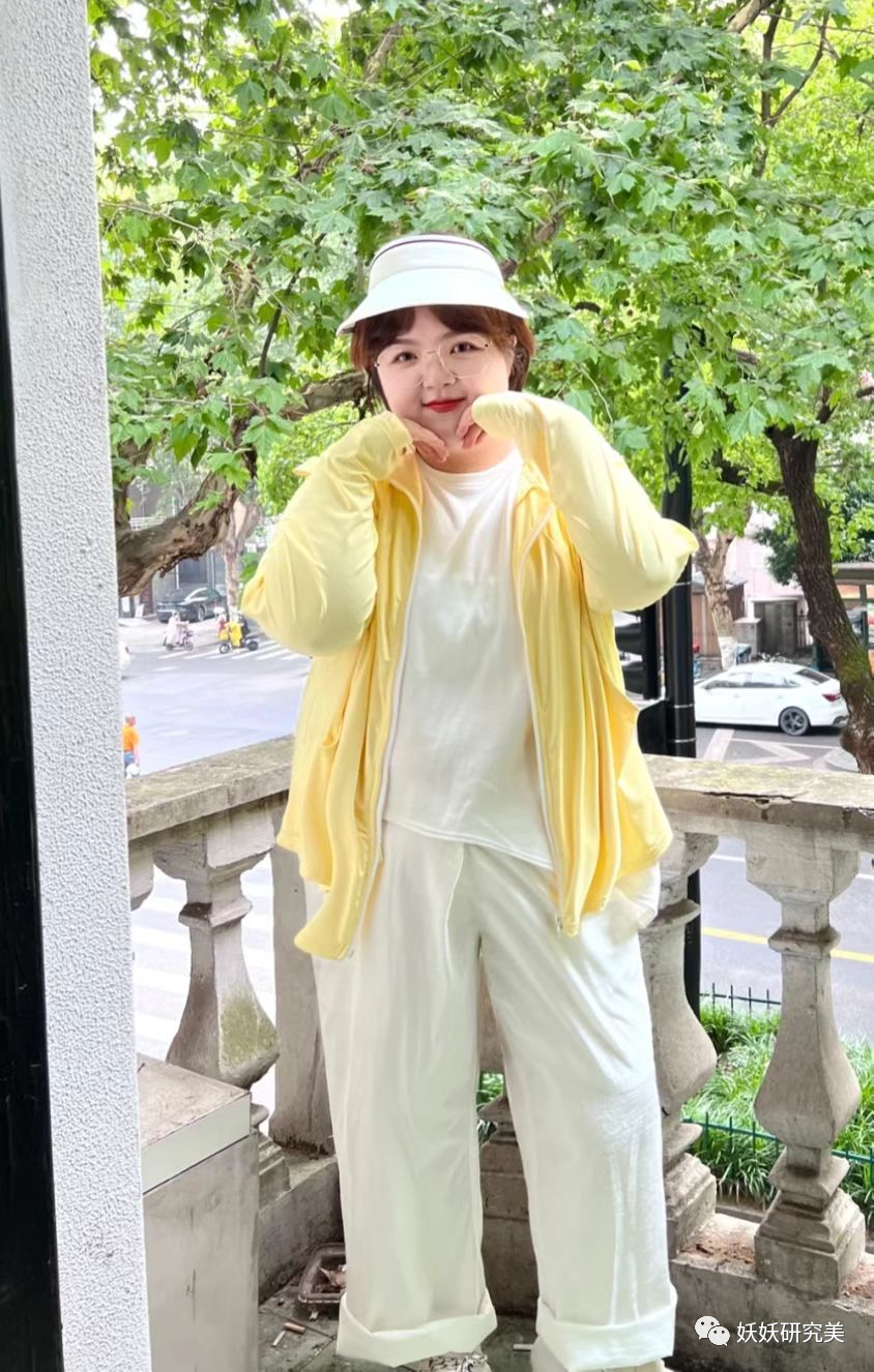 越是胖的人,越要穿亮一点的色彩,尤其是清新感较强的那些,如白色草绿色鹅黄色等,无论在哪个季节看着都非常轻盈清爽,视觉上也许宽度增加,但量感会大幅下降。200斤160cm看到的第一眼,只让人觉得可爱,没有人会在意她胖不胖↓