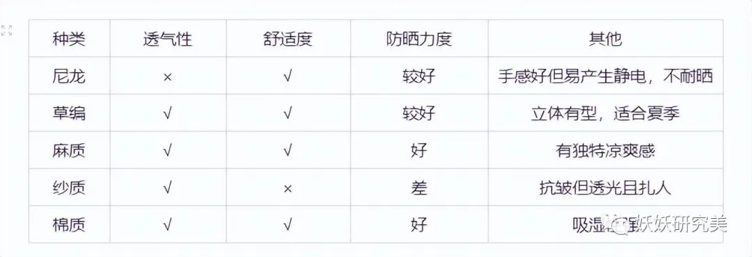 纱质的帽子轻巧透气,装饰性强,但也比较透光,因此防晒力差。而且这种材质较硬,肤感效果较差。▼
