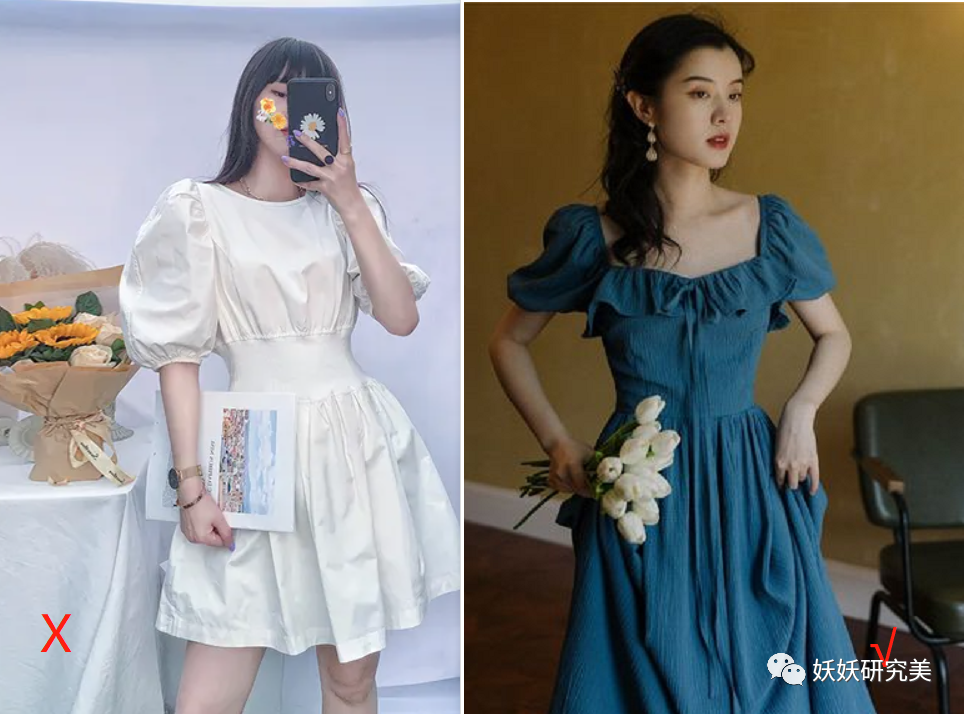 泡泡袖是溜肩、肩窄的福音,无论你肩溜到什么程度,泡泡袖立马都能给支棱起来。但如今却常常看到女生吐槽这种设计,认为泡泡袖显壮。