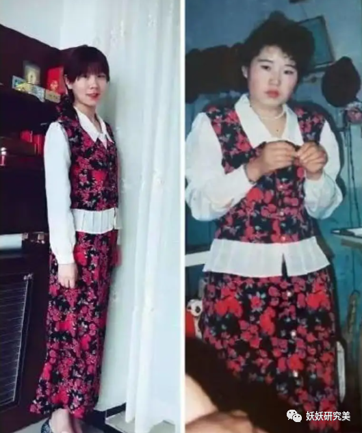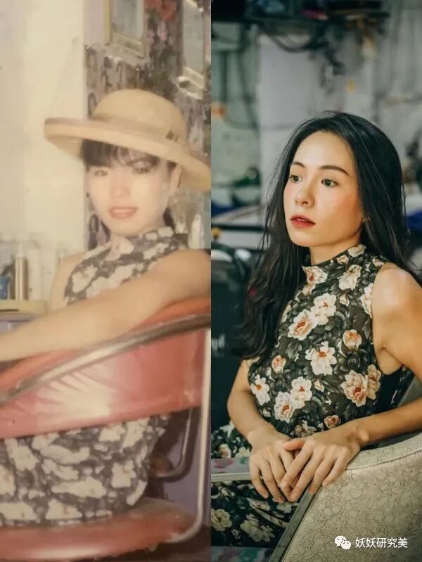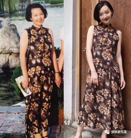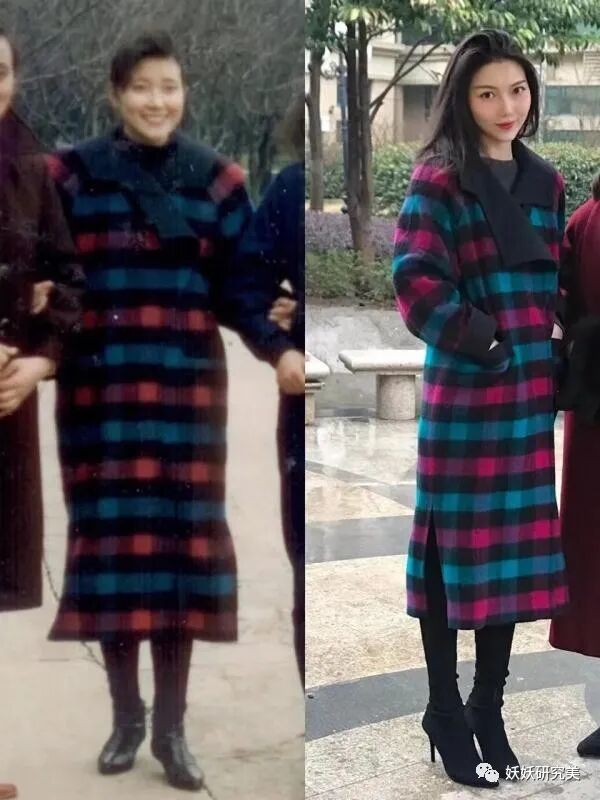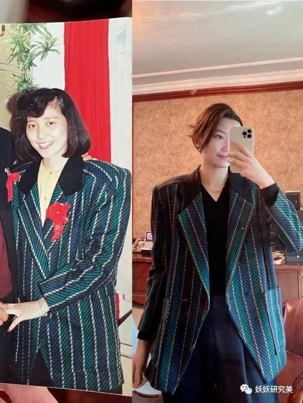 但令人遗憾的是,不知道为什么,明明如今像素好很多,妆容也更精致,甚至图片还是精修过的,对比起过去妈妈的同款照片,却毫无优势。