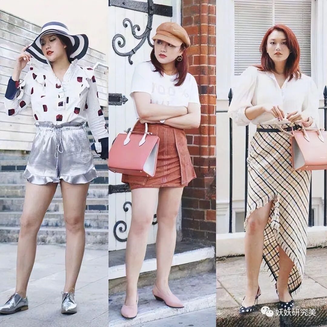 所以大家夏天穿裙子,请务必避开长裙,把小腿露出来,缩小膨胀范围。穿裤子的时候上衣尽可能修身,放出肩颈线,少穿圆领的衣服,衣服领口不必深,但至少露出锁骨,有留白才能拉伸线条。脖颈显得纤细,脸也会跟着小一圈。