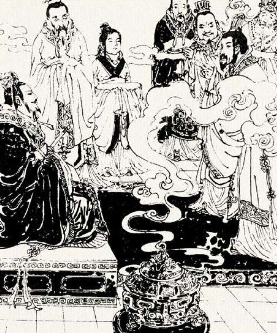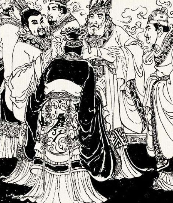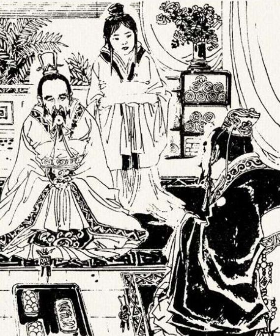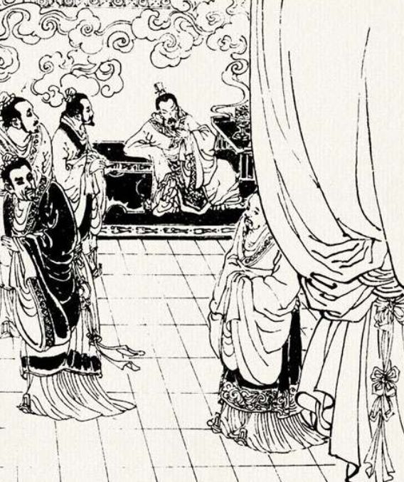 国君双眉紧锁,旧话重提。大臣们你瞅瞅我,我瞅瞅他。一句话也说不上来。