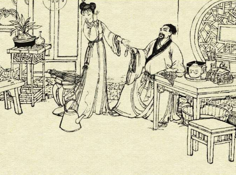 老木匠把门一关,嬉皮笑脸就往四儿媳妇身边靠,想占便宜。