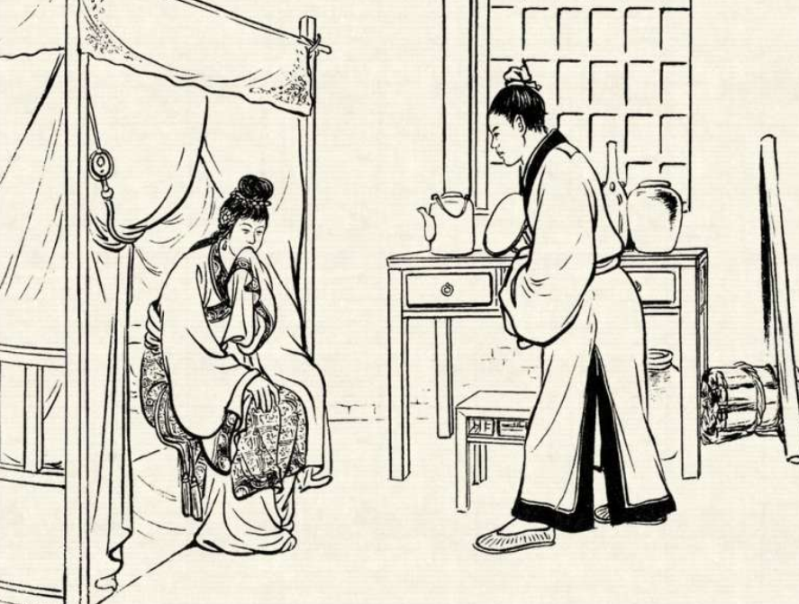 妻子一听,慌里慌张,立刻把张员外藏到柜子里。