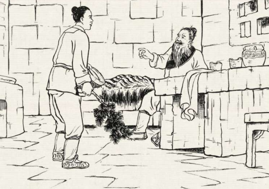 这一日,长生在山上砍柴,看见树下躺着一个老乞丐。衣衫破烂,枯瘦如柴,饿得只有出气没有出气。