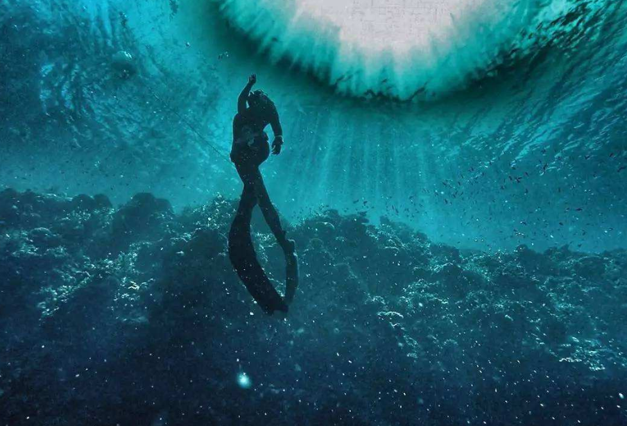 两人熟门熟路地顺着声音传来的地方,一路向下潜去,越往下光线越暗,随着水流折射出奇幻的色彩,除了不时的水泡声,一切显得安静极了。
